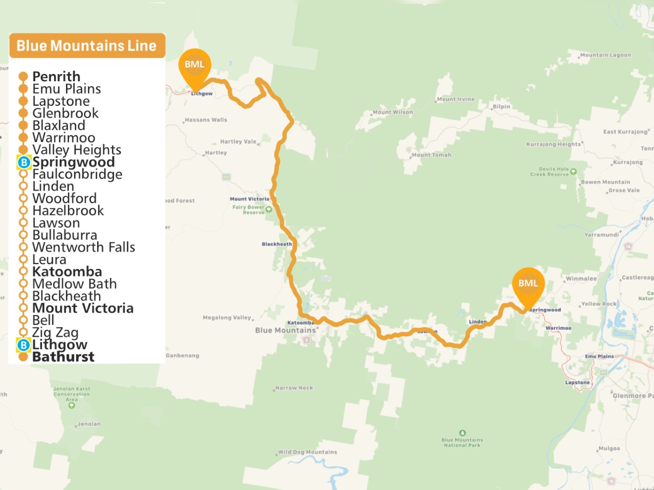 Blue Mountains Train Line Map