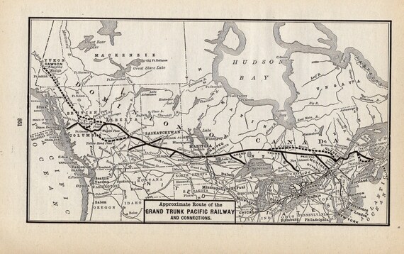 1906 Antique Grand Trunk Pacific Railway Map Vintage Railroad